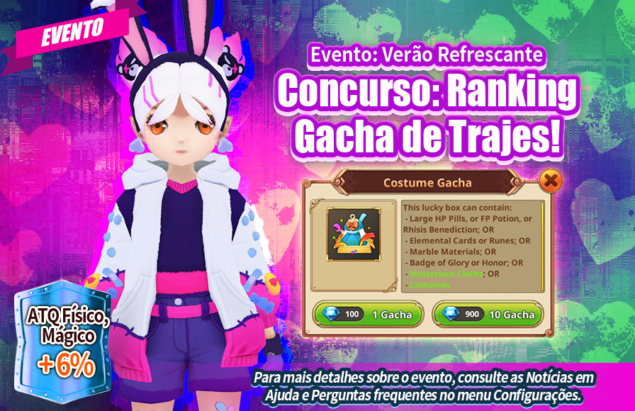 * O evento terminará mais cedo se todos os prêmios do Gacha Limitado estiverem esgotados.