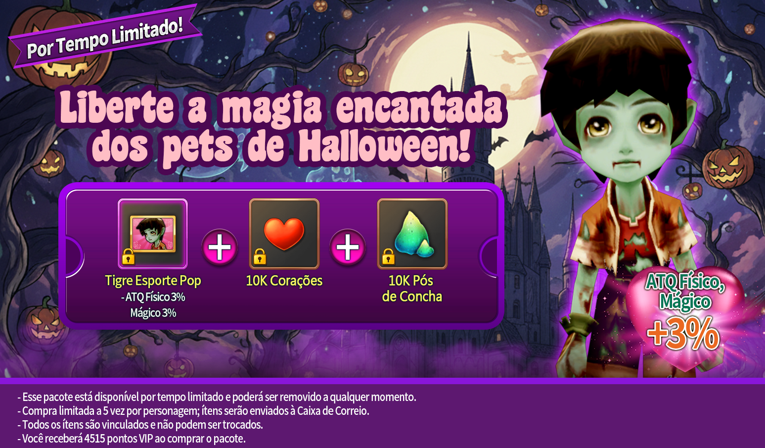 Esses pets estarão disponíveis apenas por tempo limitado durante o evento e podem ser obtidos através da Pet Gacha ou comprando pacotes especiais.