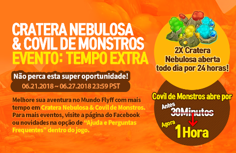 DESCRIÇÃO: Enriqueça sua aventura dentro do Flyff Legacy aproveitando o aumento de participações e um tempo maior para o Covil de Monstros! Você está pronto?