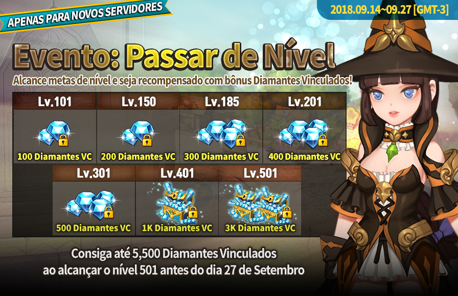 DESCRIÇÃO: Suba de nível e receba recompensas! Detalhes listados no banner do respectivo evento.