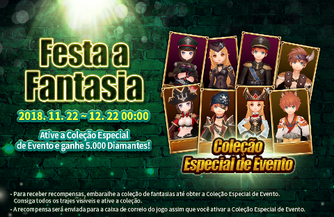 * Depois de ativar a Coleta de Evento Especial, 5.000 Diamantes serão enviados para sua caixa de correio no jogo.