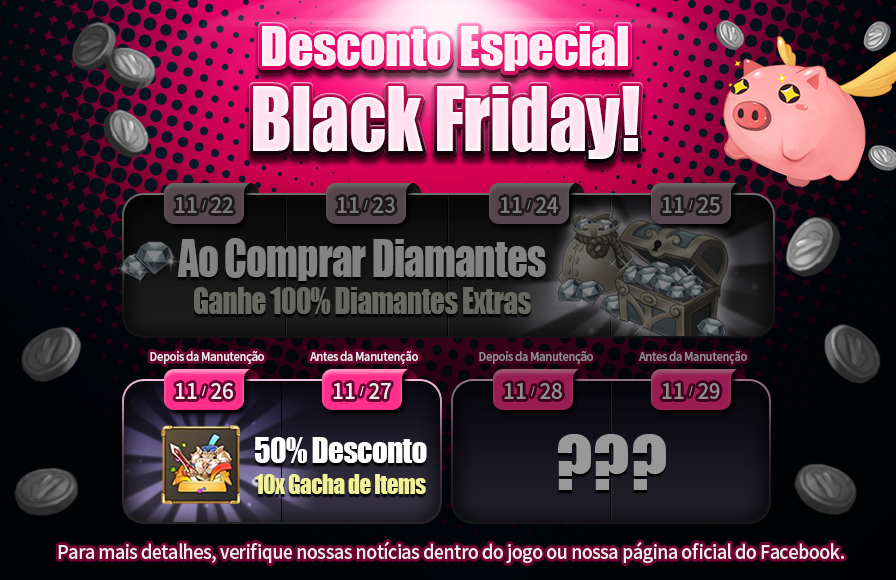 Hoje teremos manutenção dos servidores. Nós também estaremos colocando evento no jogo; mais detalhes abaixo!
