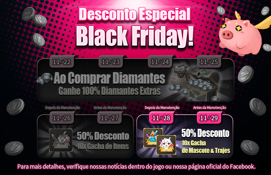 Hoje teremos manutenção dos servidores. Nós também estaremos colocando evento no jogo; mais detalhes abaixo!