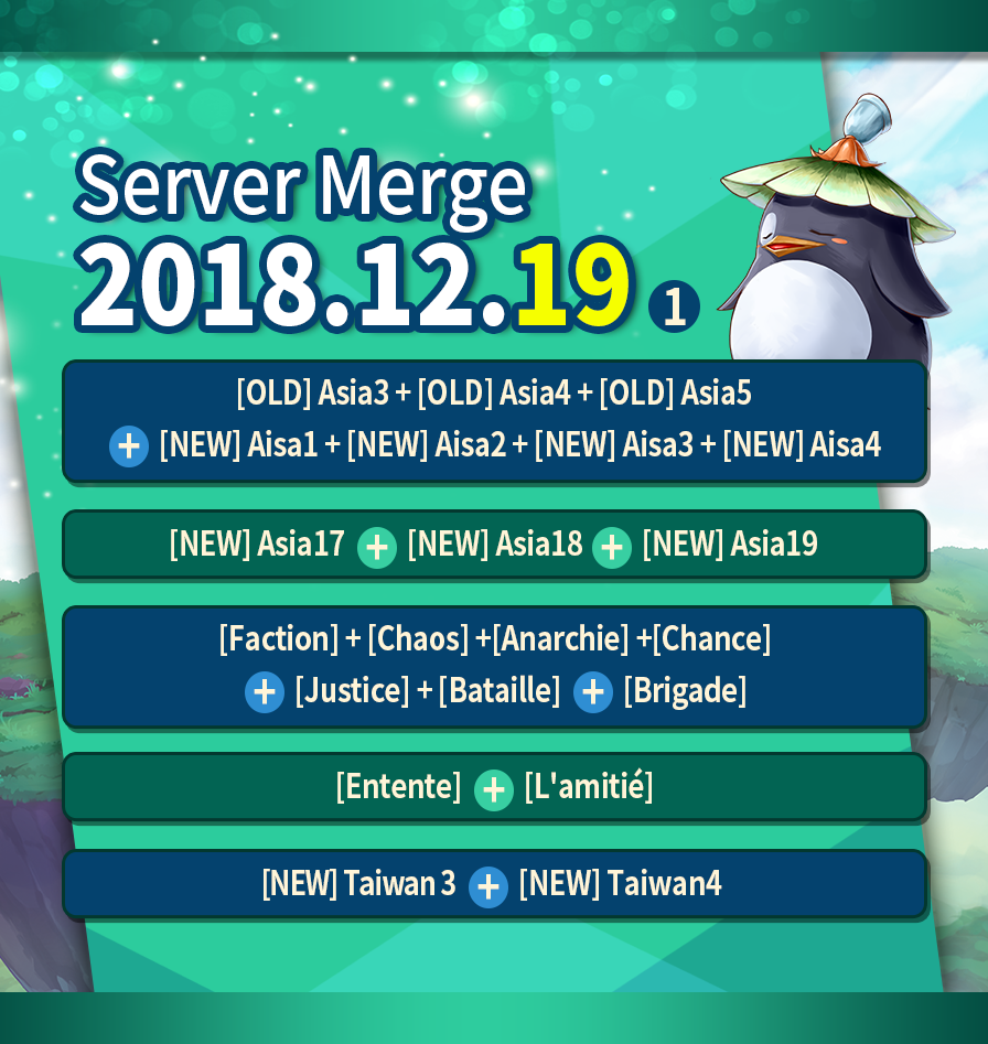 Estamos anunciando algumas futuras mesclagens de servidores, que acontecerão nos dias 11, 17, 18 e 19 de dezembro.