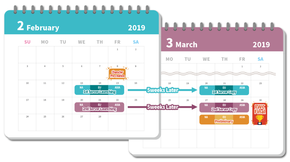A partir de 8 de fevereiro de 2019, será possível pré-criar um personagem no servidor antes de sua abertura. Você também receberá 1 Unicorn Pet Coupon pronto para usar naquele personagem pré-criado no servidor do torneio.