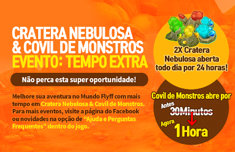 DESCRIÇÃO: Fique rico se aventurando no Flyff Legacy! Aproveite o dobro de recompensas na Cratera e mais tempo no Covil de Monstros! Você está pronto?