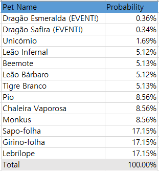 ★ Lista Gacha de Mascotes (De 10 Gacha de Mascotes, a probabilidade de 9 mascotes)