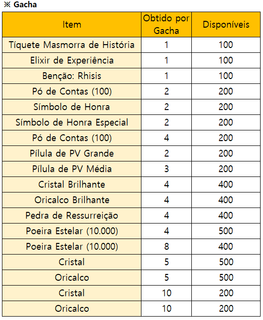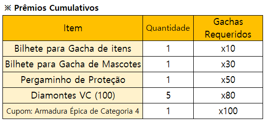* O evento terminará mais cedo se todos os prêmios do Gacha Limitado estiverem esgotados.