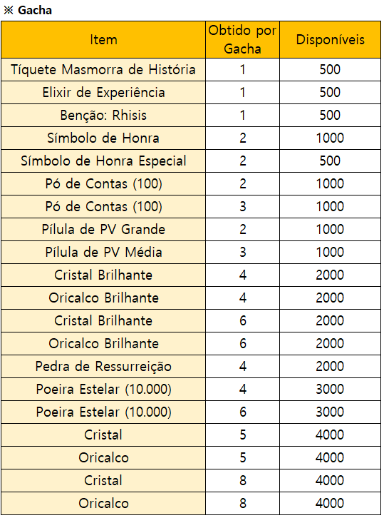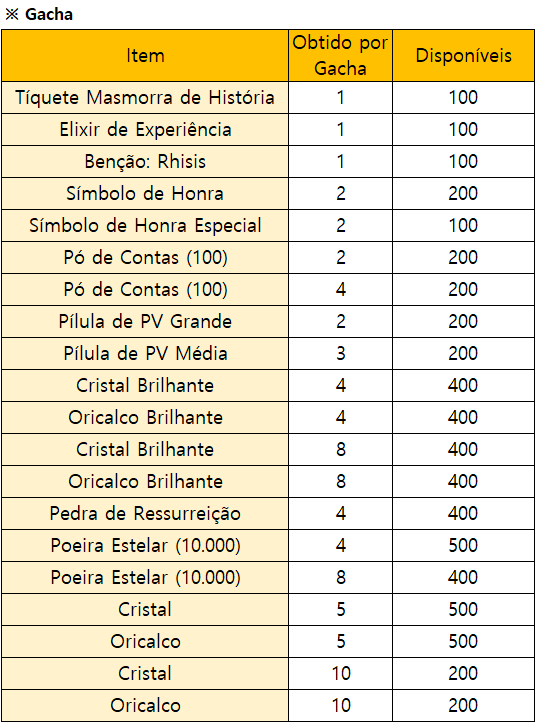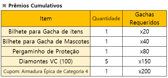* O evento terminará mais cedo se todos os prêmios do Gacha Limitado estiverem esgotados.