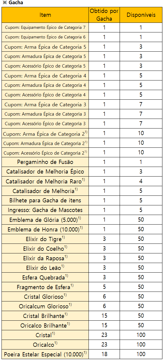* O evento terminará mais cedo se todos os prêmios do Gacha Limitado estiverem esgotados.