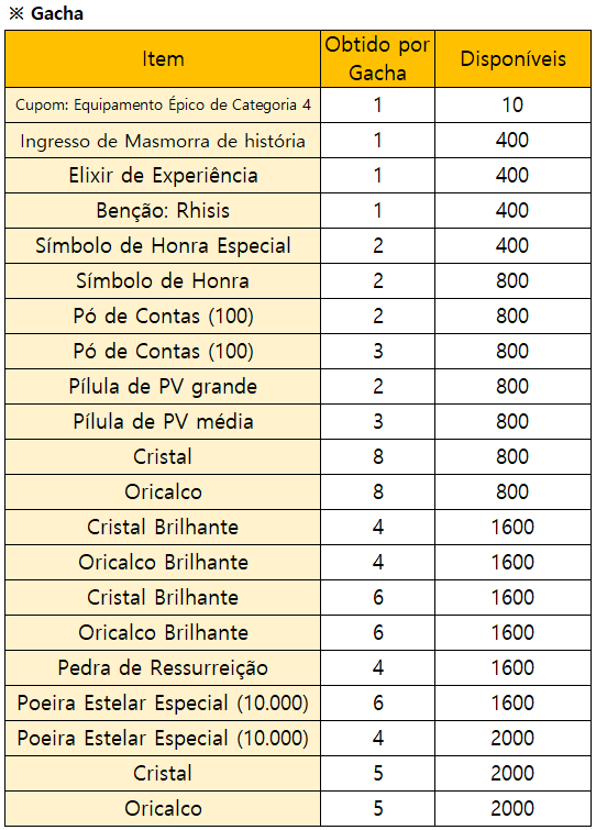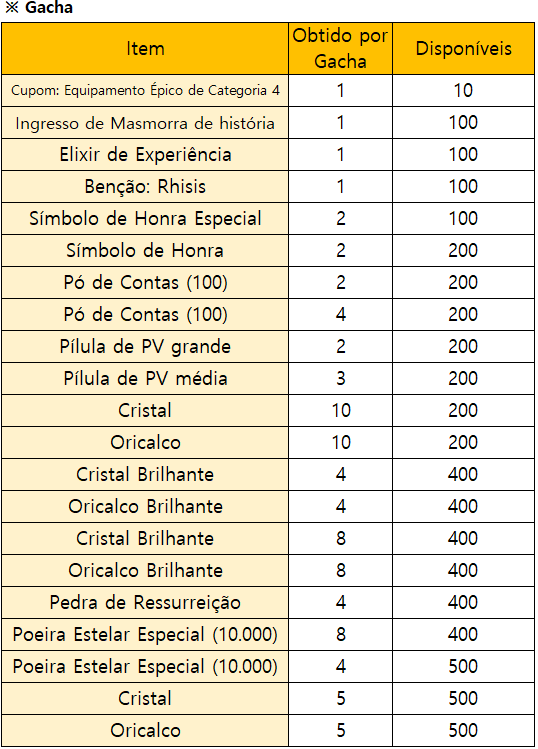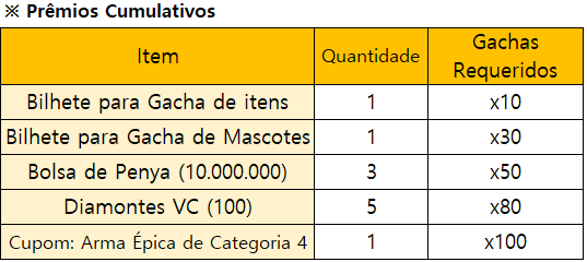 * O evento terminará mais cedo se todos os prêmios do Gacha Limitado estiverem esgotados.