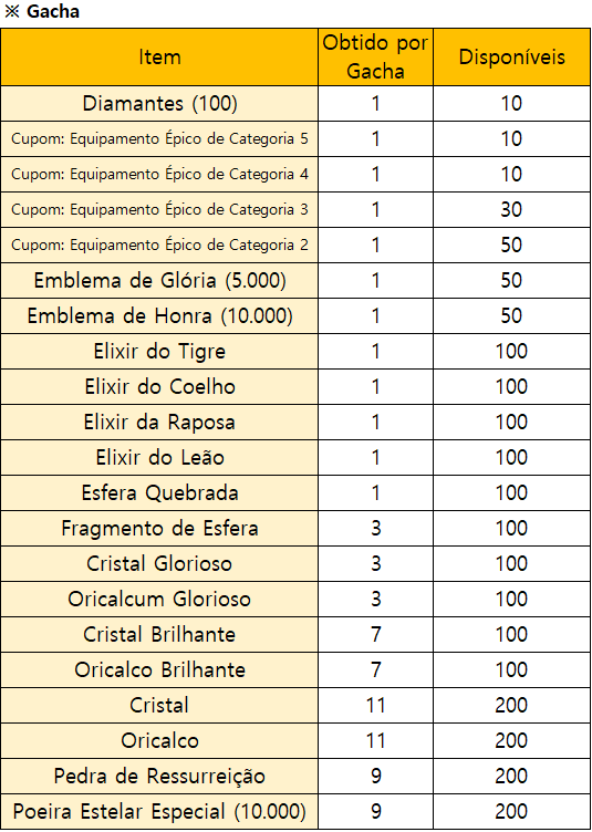 * O evento terminará mais cedo se todos os prêmios do Gacha Limitado estiverem esgotados.