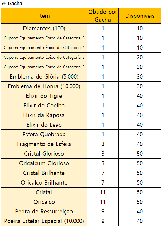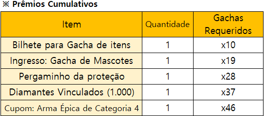 * O evento terminará mais cedo se todos os prêmios do Gacha Limitado estiverem esgotados.