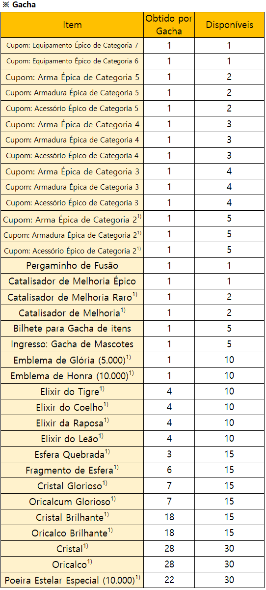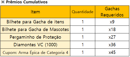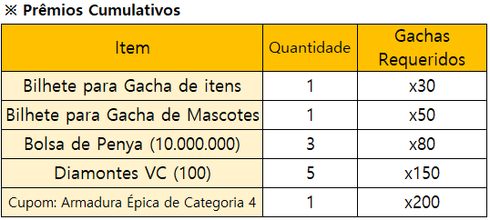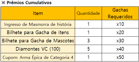 * O evento terminará mais cedo se todos os prêmios do Gacha Limitado estiverem esgotados.