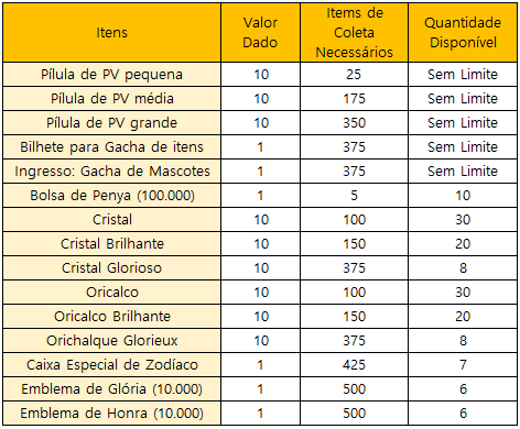 Caixa Especial de Zodíaco: Obtém 1 dos itens a seguir aleatóriamente