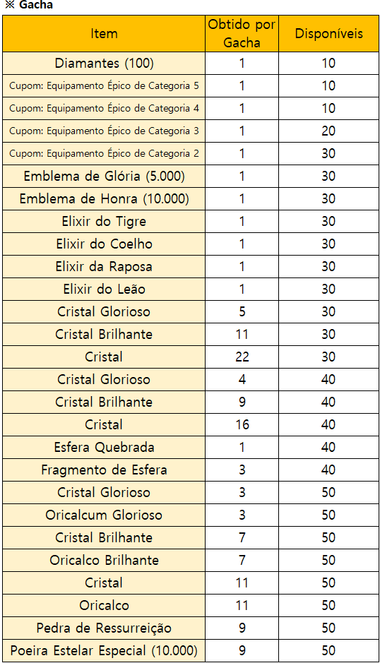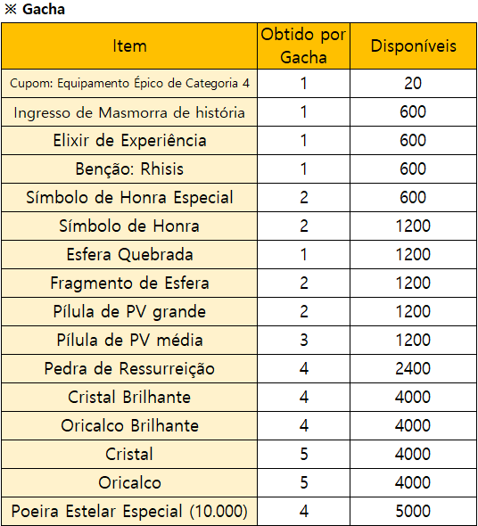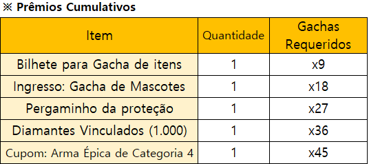 * O evento terminará mais cedo se todos os prêmios do Gacha Limitado estiverem esgotados.
