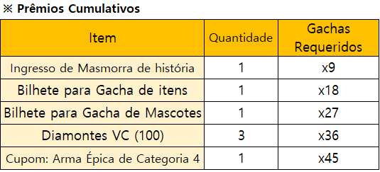 * O evento terminará mais cedo se todos os prêmios do Gacha Limitado estiverem esgotados.