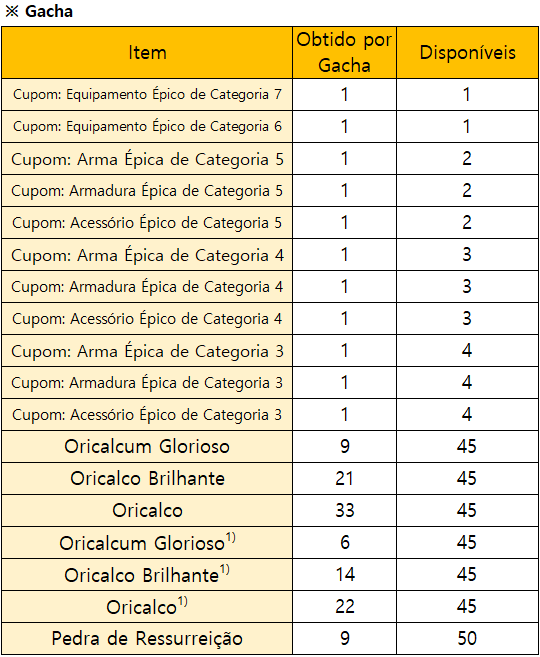 * O evento terminará mais cedo se todos os prêmios do Gacha Limitado estiverem esgotados.