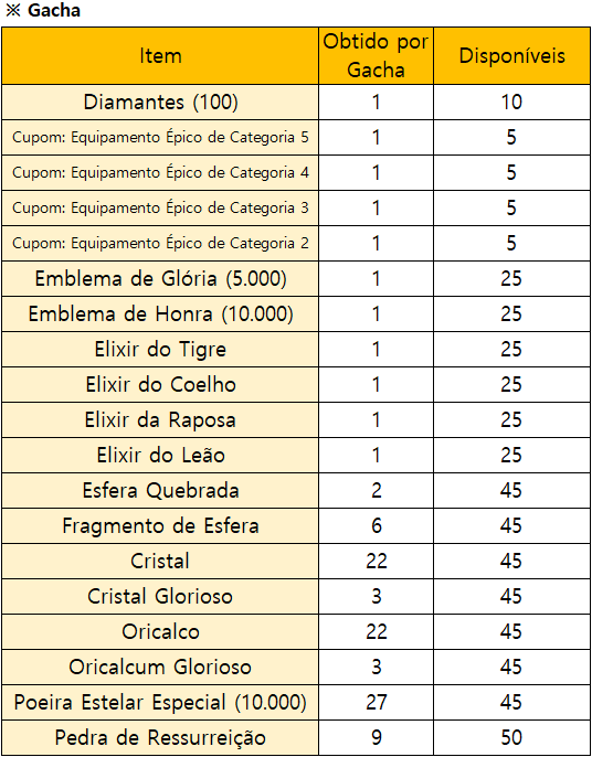 * O evento terminará mais cedo se todos os prêmios do Gacha Limitado estiverem esgotados.