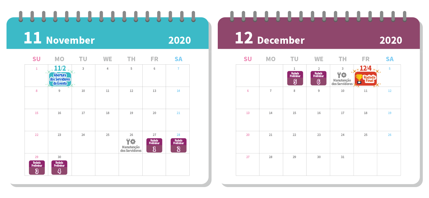 4) Após as rodadas preliminares terem sido concluídas por 6 dias (27 de novembro a 2 de dezembro), os resultados serão computados e os 50 melhores jogadores para as finais serão escolhidos em 3 de dezembro. Faremos um anúncio separado para isso posteriormente. Vale lembrar que a Arena realizada no dia 3 de dezembro não faz parte do evento.