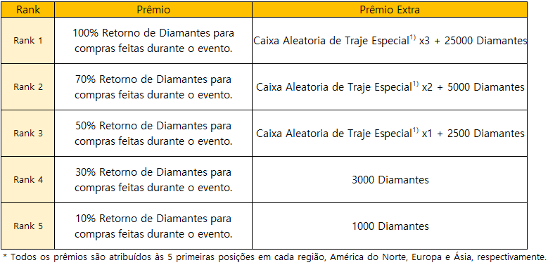 - Os prêmios no jogo serão dados após a contagem dos resultados. Os detalhes serão publicados em uma data posterior.