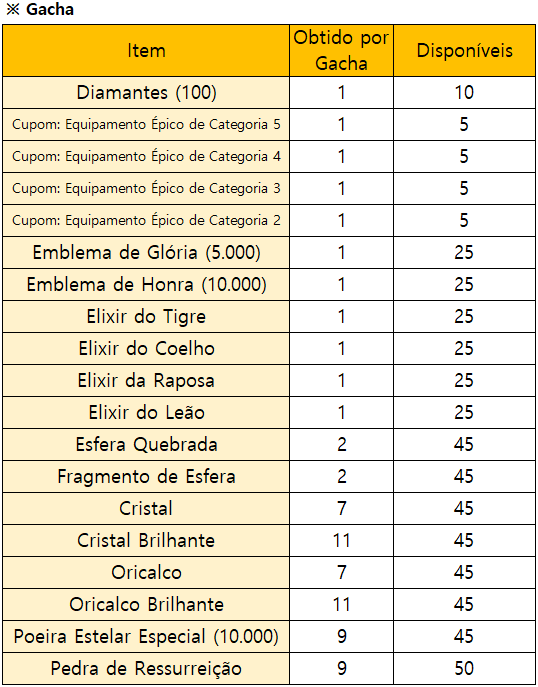 * O evento terminará mais cedo se todos os prêmios do Gacha Limitado estiverem esgotados.