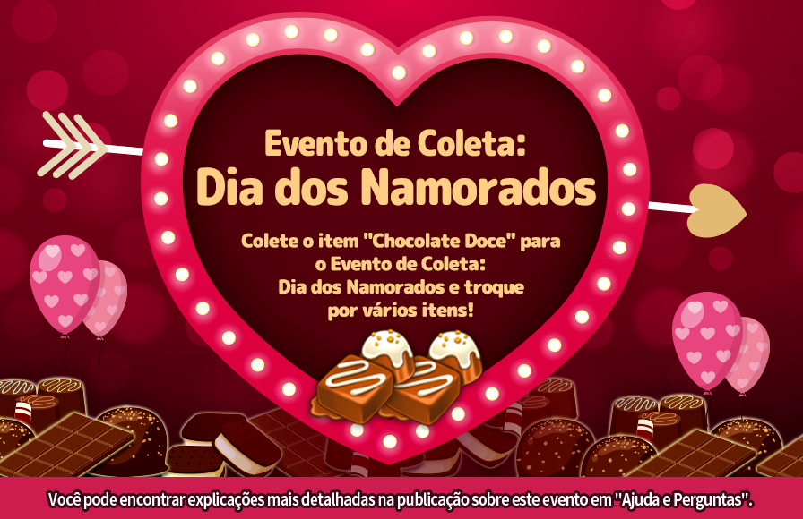 O item "Chocolate Doce" não pode ser obtido após 2.17.2021 23:59, NO ENTANTO, você ainda pode trocar itens até 2.18.2021 23:59. Após o período de troca, o item será excluído da sua bolsa durante a manutençã. Antes disso, você pode vendê-los para Penya Vinculada.