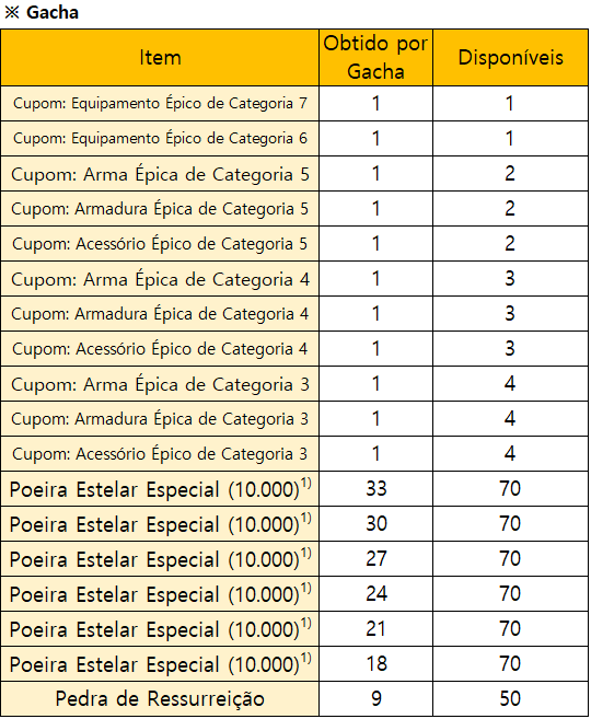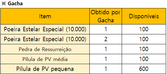 * O evento terminará mais cedo se todos os prêmios do Gacha Limitado estiverem esgotados.
