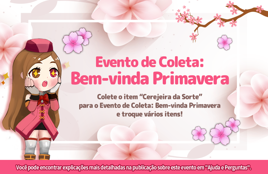 O item "Cerejeira da Sorte" não pode ser obtido após 03.17.2021 23:59, NO ENTANTO, você ainda pode trocar itens até 03.18.2021 23:59. Após o período de troca, o item será excluído da sua bolsa durante a manutençã. Antes disso, você pode vendê-los para Penya Vinculada.