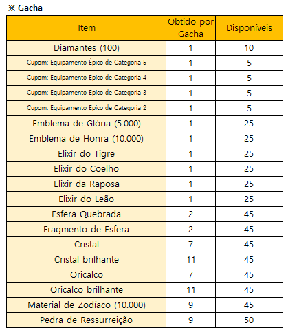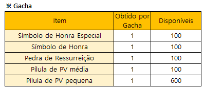 * O evento terminará mais cedo se todos os prêmios do Gacha Limitado estiverem esgotados.
