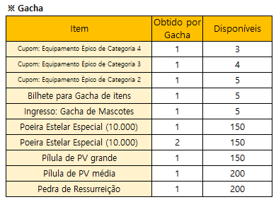 * O evento terminará mais cedo se todos os prêmios do Gacha Limitado estiverem esgotados.