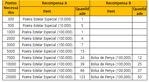 Você pode ganhar as seguintes recompensas durante o período do evento: