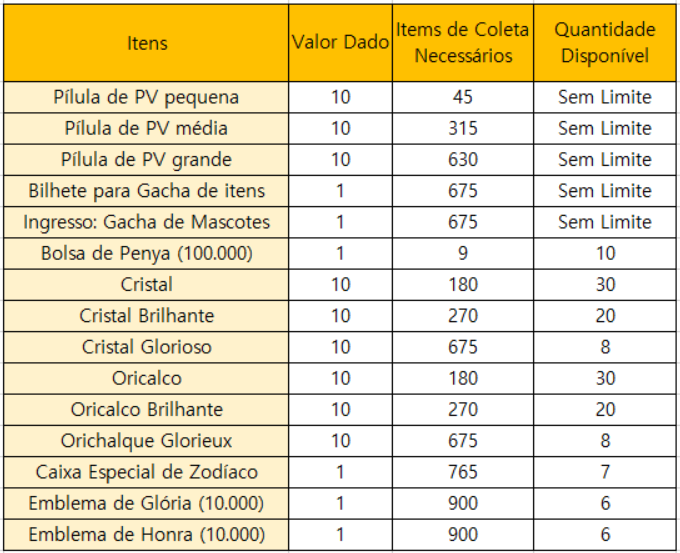• Caixa Especial de Zodíaco: Obtém 1 dos itens a seguir aleatóriamente