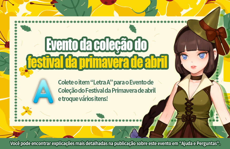 O item "Letra A" não pode ser obtido após 04.14.2021 23:59, NO ENTANTO, você ainda pode trocar itens até 04.15.2021 23:59. Após o período de troca, o item será excluído da sua bolsa durante a manutençã. Antes disso, você pode vendê-los para Penya Vinculada.