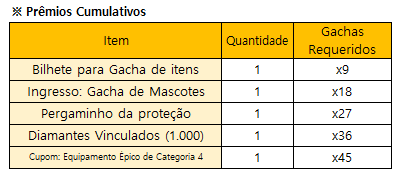 * O evento terminará mais cedo se todos os prêmios do Gacha Limitado estiverem esgotados.