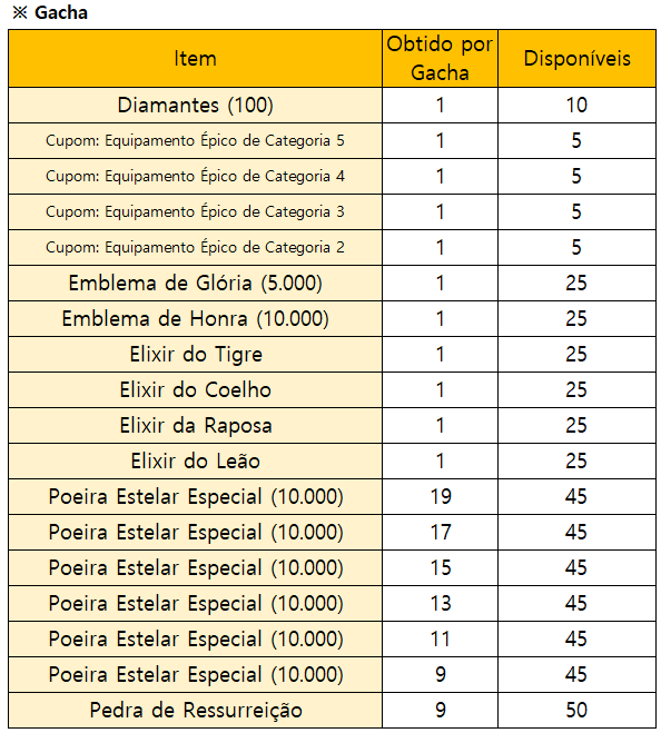 * O evento terminará mais cedo se todos os prêmios do Gacha Limitado estiverem esgotados.