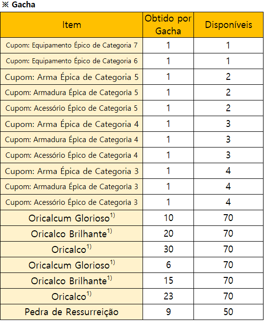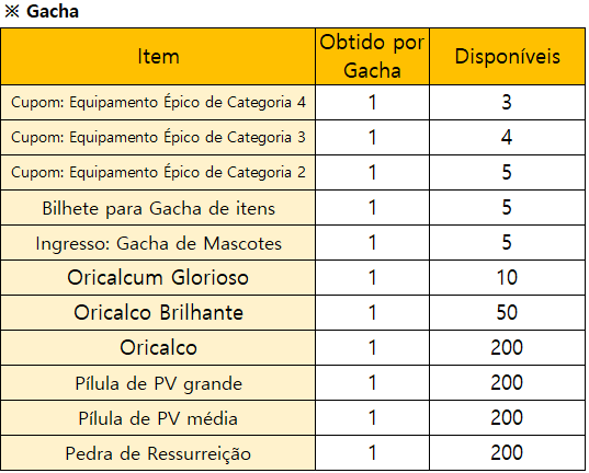 * O evento terminará mais cedo se todos os prêmios do Gacha Limitado estiverem esgotados.