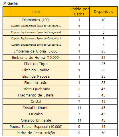 * O evento terminará mais cedo se todos os prêmios do Gacha Limitado estiverem esgotados.