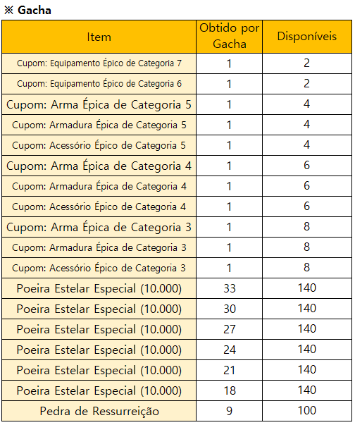 * O evento terminará mais cedo se todos os prêmios do Gacha Limitado estiverem esgotados.