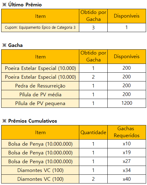 * O evento terminará mais cedo se todos os prêmios do Gacha Limitado estiverem esgotados.