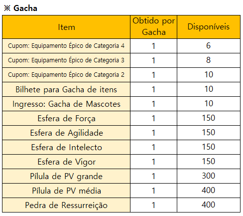 * O evento terminará mais cedo se todos os prêmios do Gacha Limitado estiverem esgotados.