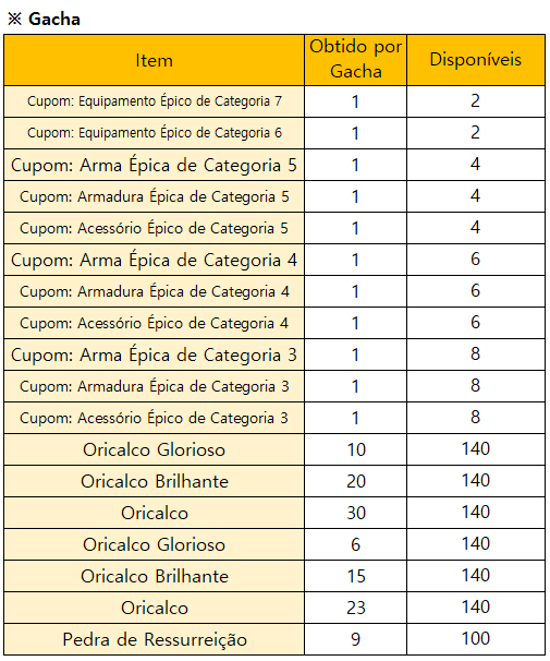 * O evento terminará mais cedo se todos os prêmios do Gacha Limitado estiverem esgotados.
