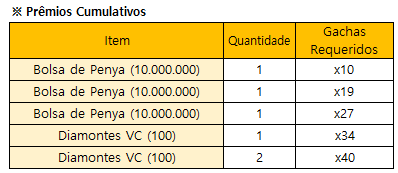 * O evento terminará mais cedo se todos os prêmios do Gacha Limitado estiverem esgotados.