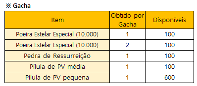 * O evento terminará mais cedo se todos os prêmios do Gacha Limitado estiverem esgotados.