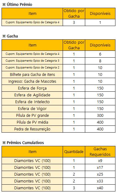 * O evento terminará mais cedo se todos os prêmios do Gacha Limitado estiverem esgotados.