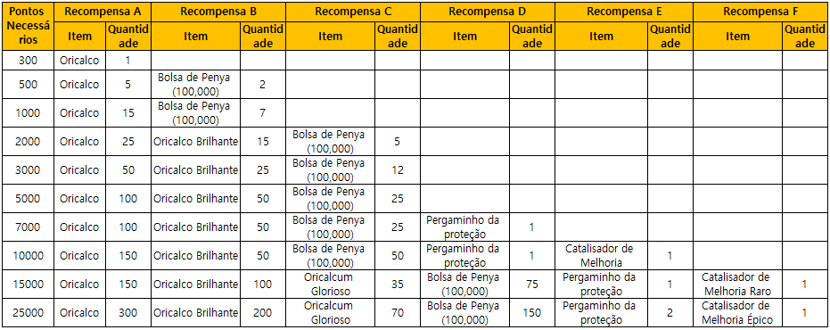 Você pode ganhar as seguintes recompensas durante o período do evento: