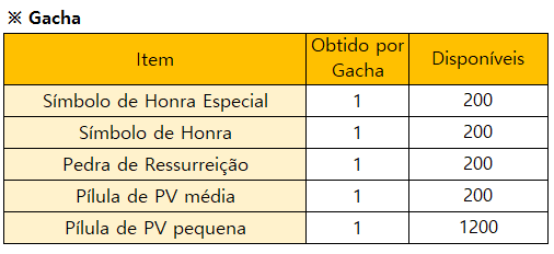 * O evento terminará mais cedo se todos os prêmios do Gacha Limitado estiverem esgotados.
