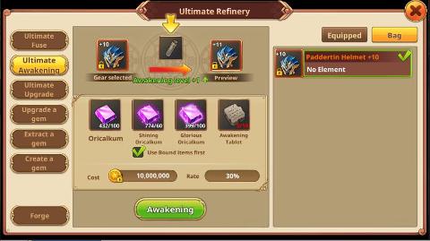 Через Совершенное пробуждение уровень обновления снаряжения может достигать +20. Даже если Совершенное пробуждение не удалось, уровень обновления будет уменьшаться.