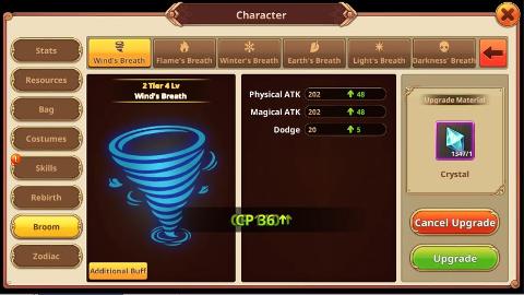 Всего может быть введено 6 типов дыхания. У каждого Дыхания есть разные варианты.Чтобы обновить Дыхание, вам нужны кристаллы и сияющие кристаллы.Если все Дыхания обновлены до T7 и выше, будут применены дополнительные усиления для БС.