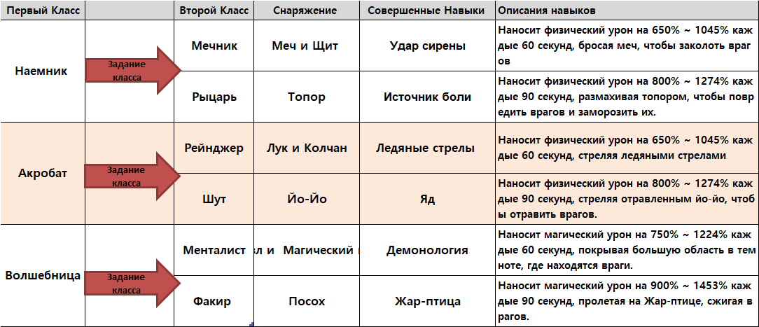 Герои первого класса уровня 501 или выше могут изменить свой класс, выполнив квесты второго класса.* Когда герои второго класса возрождаются из города, их ОЗ будет восстановлено на 10%, и если они оживут на месте, ОЗ восстановится на 50%. Если герои получат подарок Мадригала, большое количество ОЗ будет восстановлено на месте.